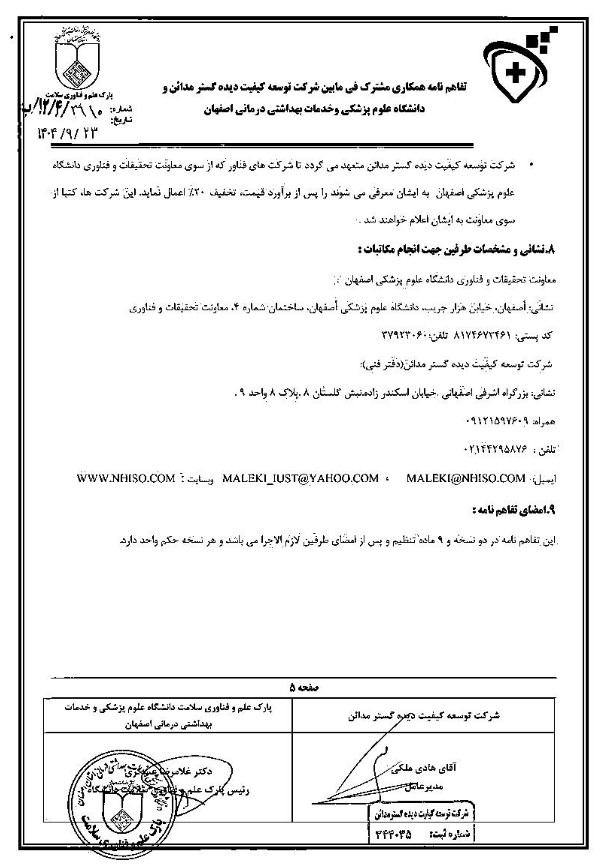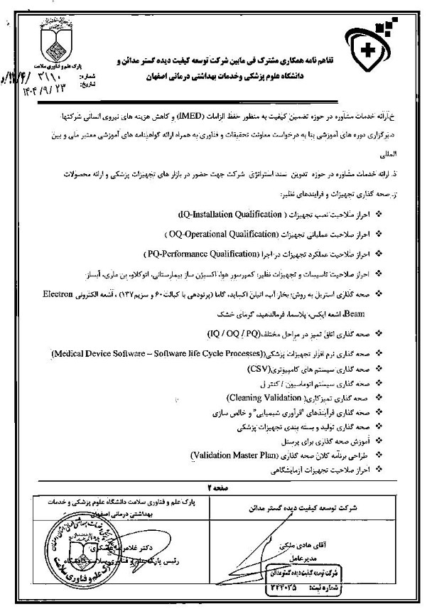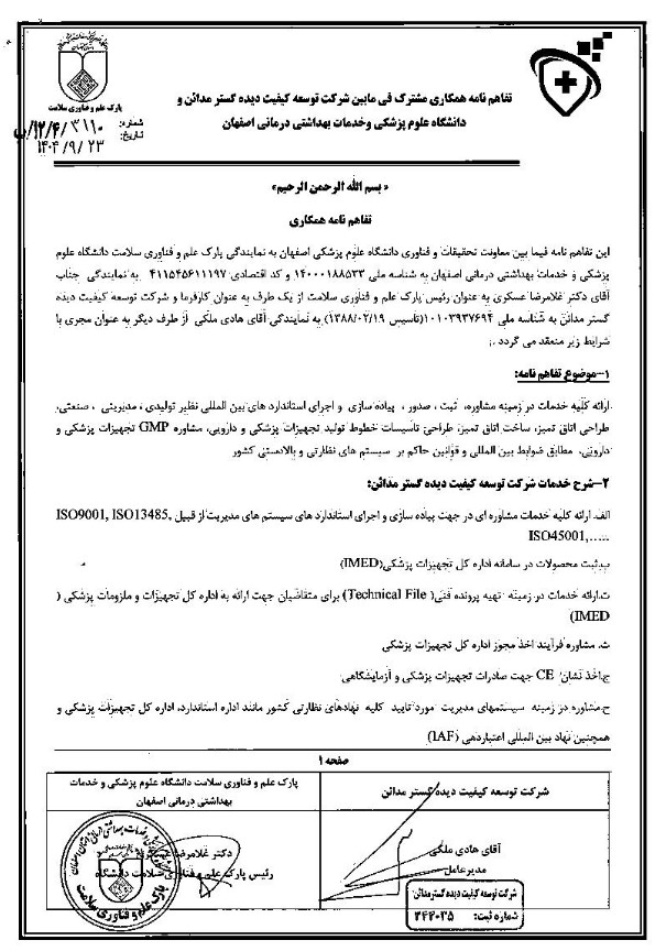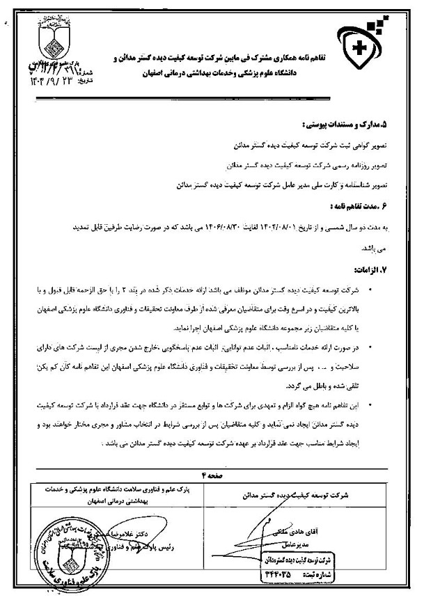 تفاهم نامه شرکت توسعه کیفیت دیده گستر مدائن-1404