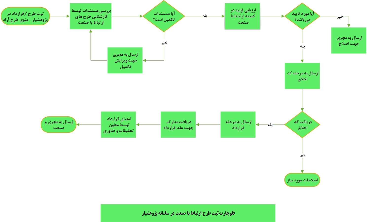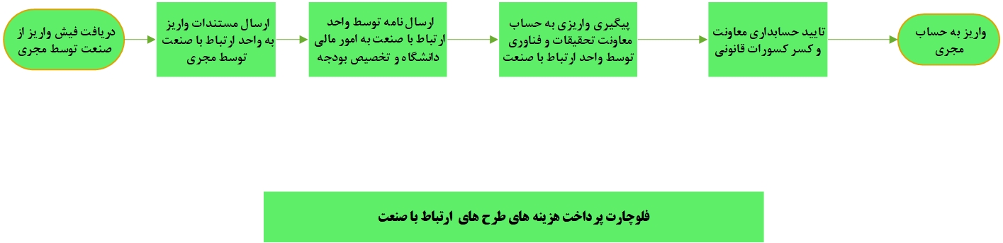 فرآیندها و فلوچارت ها فرایند قراردادهای دانشگاه با صنعتفرایند واریز هزینه های قرارداد ارتباط با صنعتفلوچارت عضو هیات علمی میهمان صنعتفلوچارت انجام قرارداد مشترک دانشگاه با صنعتفلوچارت ثبت طرحفلوچارت پرداخت هزینهفلوچارت اختتام طرحفلوچارت مفاصاحساب